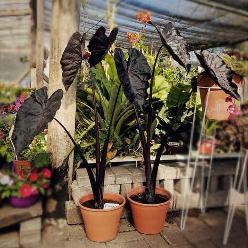 La Alocasia negra es una planta que puede llegar a los 5 metros de altura.Luz: No le gusta el pleno sol, se decolora o quema; plantar a la sombra o semisombra. Puede ponerse bajo los árboles, donde la sombra no permite el crecimiento de otras especies.Temperatura: Alocasia quiere temperaturas más bien cálidas.Humedad: Bastante humedad en el ambiente. Si la temperatura es alta, pulveriza el follaje.Riego: Riego frecuente, pero dejando secar ligeramente la superficie entre riego y riego para que no se pudra el rizoma. Riego abundante en verano y escaso en invierno.Plagas y enfermedades: Alocasia es muy resistente y rara vez le afectan los insectos o las enfermedades.Las plantas son seres vivos que requieren de nuestro cuidado y atención. El mismo amor y atención que le darías a una mascota.