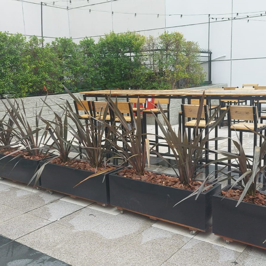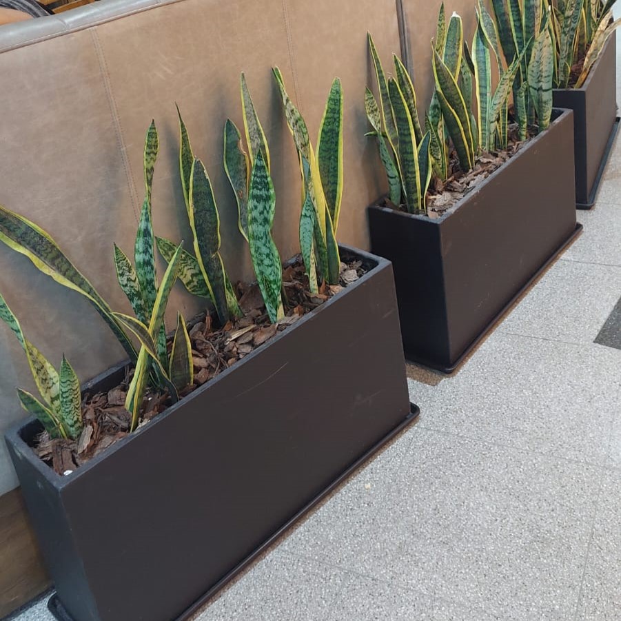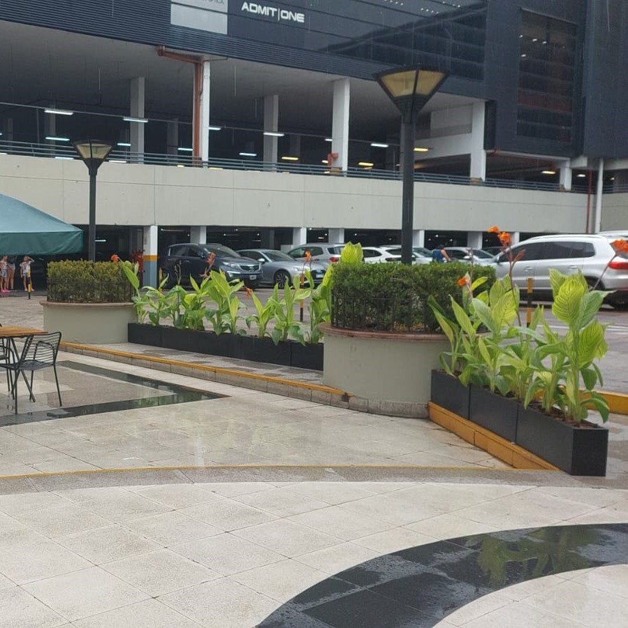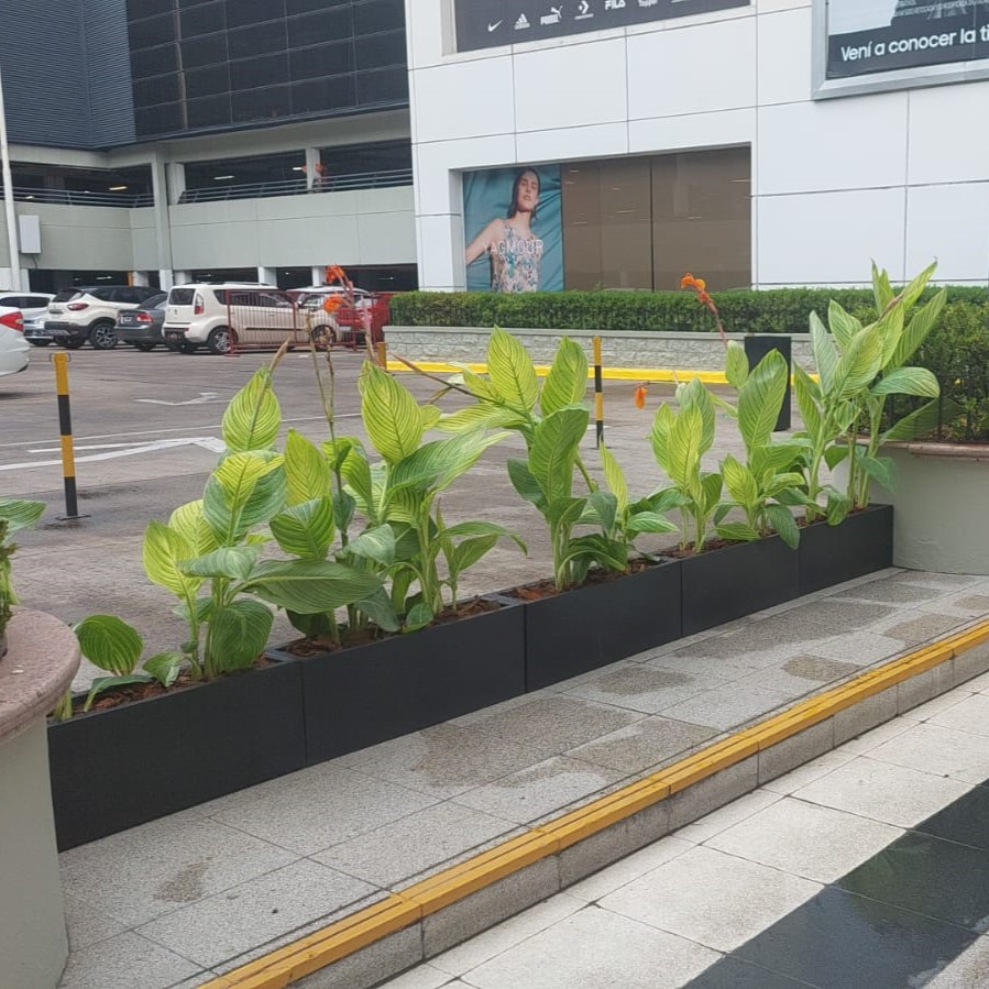 En esta obra instalamos macetas con variedades de plantas de hoja ancha, aportando naturaleza a la tienda.