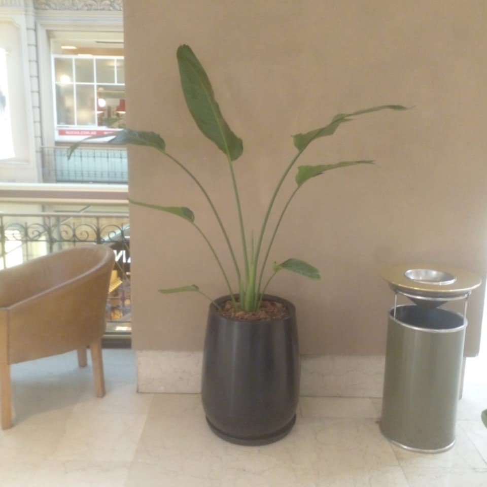 Decidimos instalar macetas plasticas rotomoldedas negras, con strelitzias nicolae, y el resultado fue el esperado. Logramos que la naturaleza no pase desapercibida, a la vez que se mantuvo la sobriedad que caracteriza al shopping.