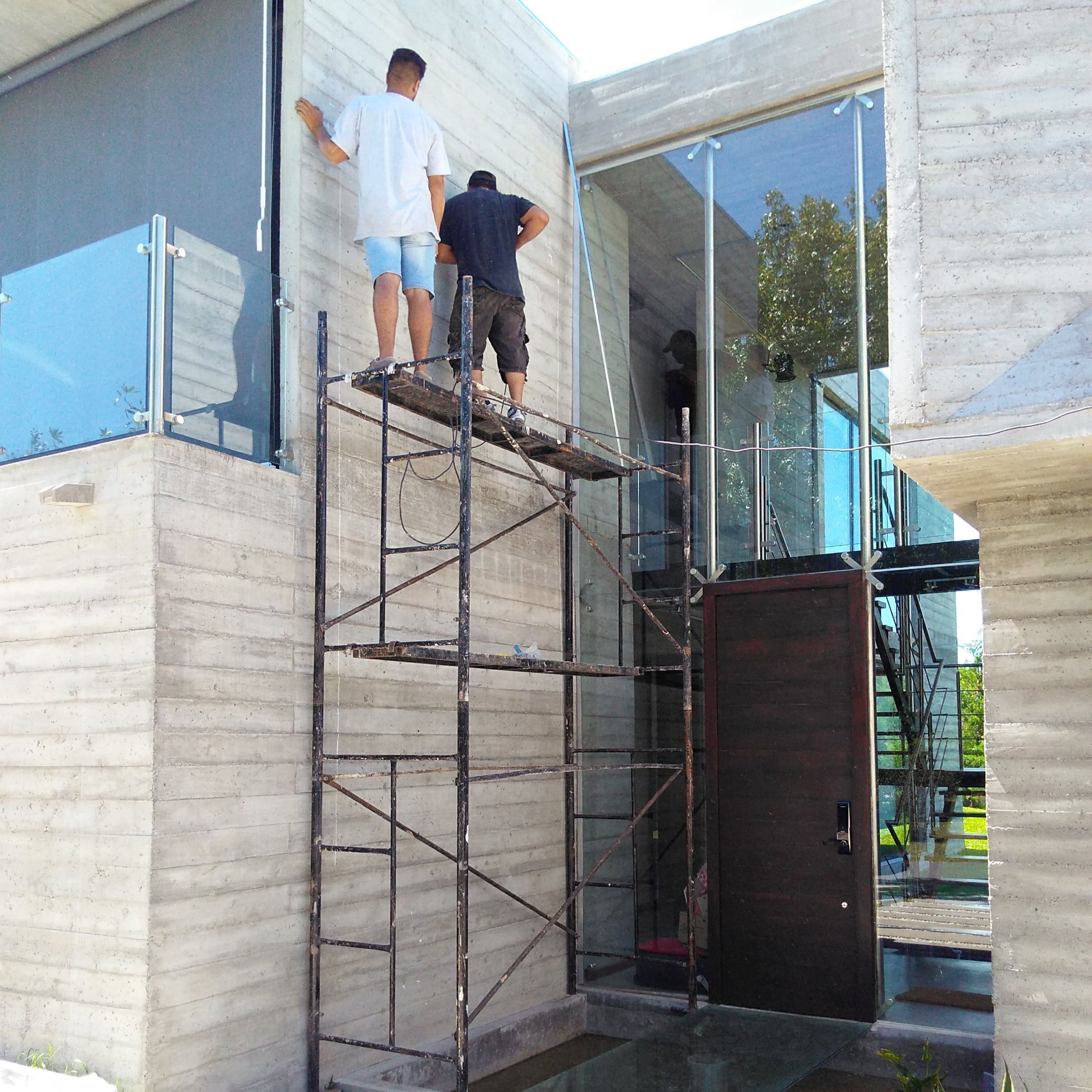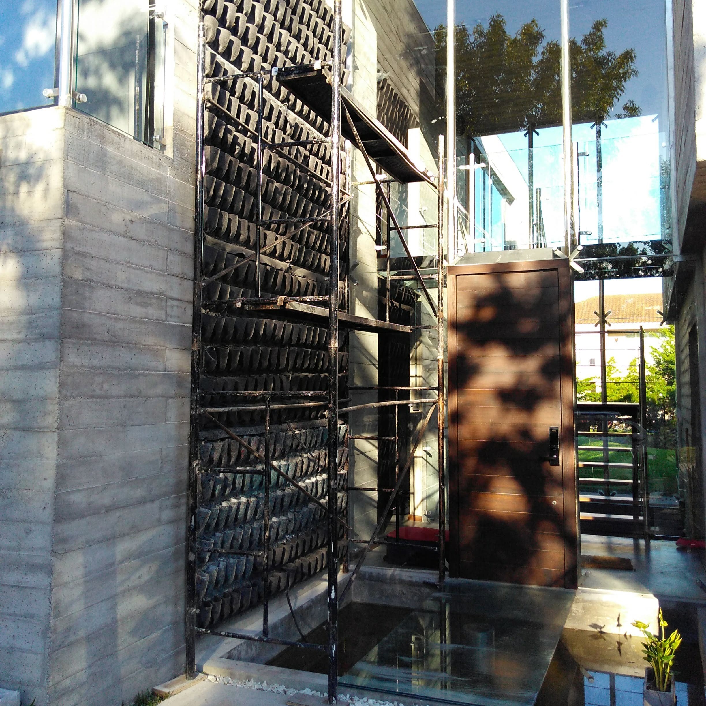 En esta obra, ubicada en el Club de Campo Grand Bell, el cliente nos pidió instalar un jardín vertical sobre un muro lateral del ingreso a la casa.