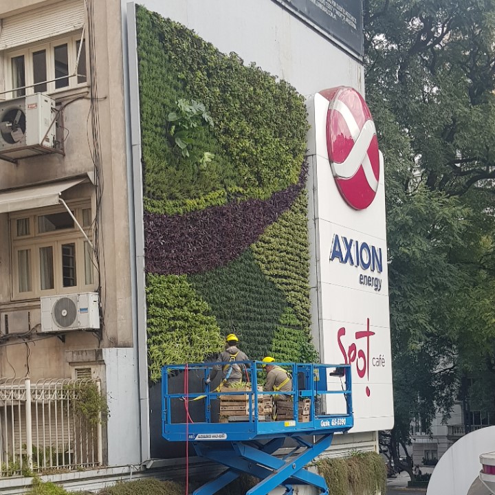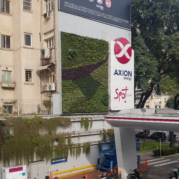 En esta obra, nuestro cliente Pan American Energy nos encomendó montar un jardín vertical en su estación de servicios insignia, ubicada en Av. del Libertador y Salguero. Trabajamos cumpliendo estrictas normas de seguridad. Este muro verde cuenta con un sistema de monitoreo remoto que sensa en tiempo real la humedad del jardin en 3 puntos diferentes, la cantidad disponible de fertilizante, la correcta periodicidad del riego, y el suministro eléctrico, entre otras mediciones.