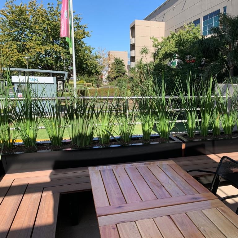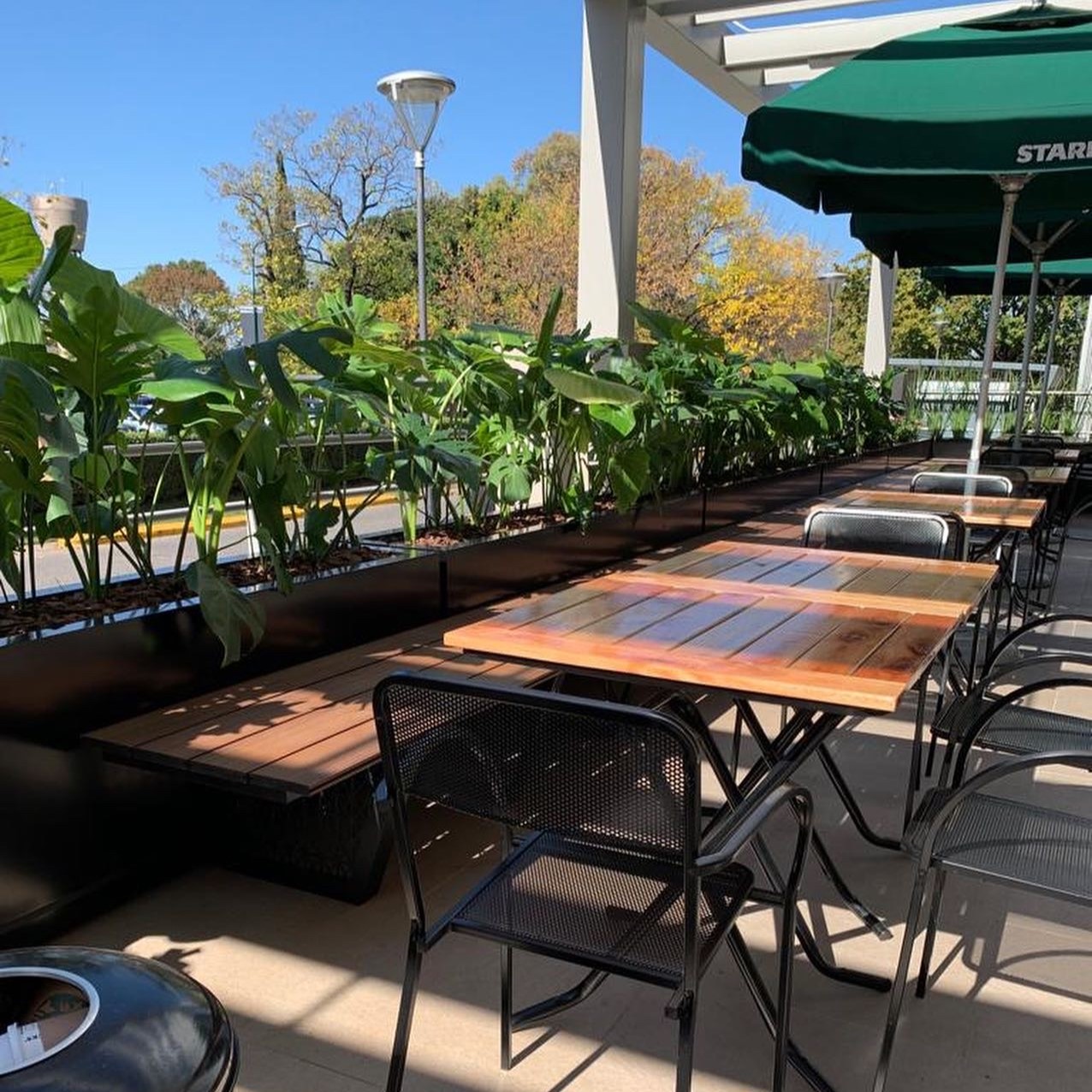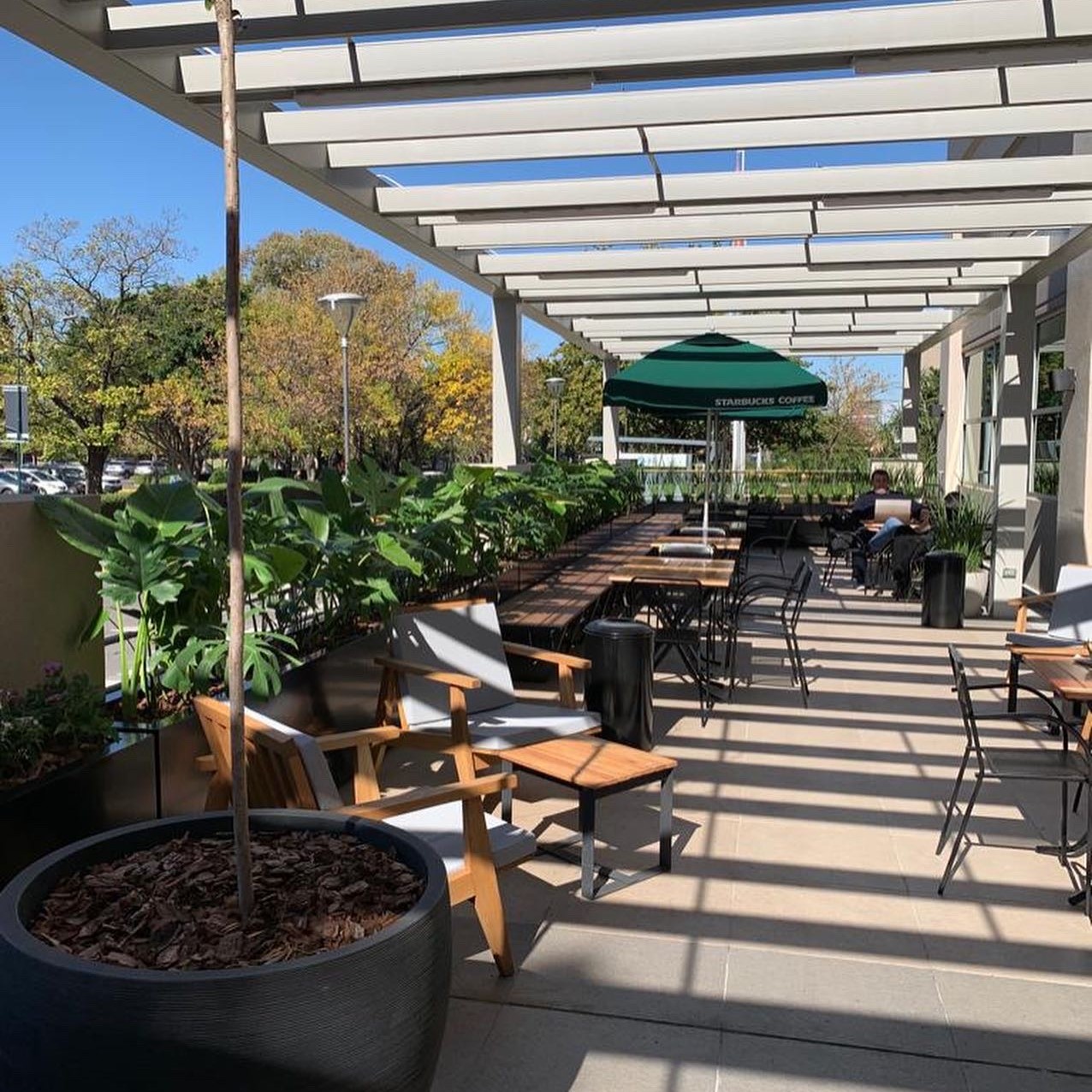 En esta obra, nuestro cliente Starbucks nos encomendó parquizar la terraza de la tienda.