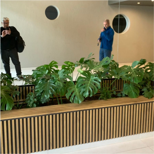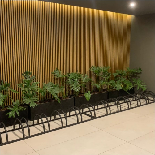 La prestigiosa constructora Compañia de Obras nos encomendó la ambientación de los espacios comunes en el edificio de Calderon de la barca 3050. Allí colocamos diferentes macetas plásticas rotomoldeadas con diversidad de especies de plantas de interior. En la zona del estacionamiento plantamos jazmines trepadores. Finalmente plantamos un arbol en el ingreso y en el cantero superior de fachada diversidad de plantas trepadoras.