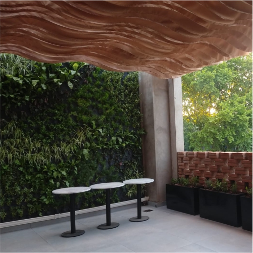 Hoy les compartimos las tareas realizadas en la primera tienda de Starbucks en Mar del Plata , allí montamos una pérgola confeccionada con telas que simulan olas cuando las mece el viento. También instalamos un jardín vertical natural con sistema de riego automático en el sector de la terraza y la decoración con plantas en el interior de la tienda. Finalmente, en los canteros del drive thru y el estacionamiento plantamos la vegetación que formará parte del entorno verde que caracteriza a las tiendas de la marca.