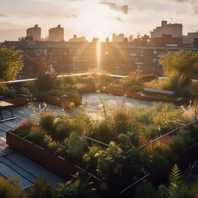 Beneficios ambientales: Las terrazas verdes ayudan a reducir la huella de carbono urbana al absorber dióxido de carbono, filtrar contaminantes del aire y proporcionar hábitats para la vida silvestre.